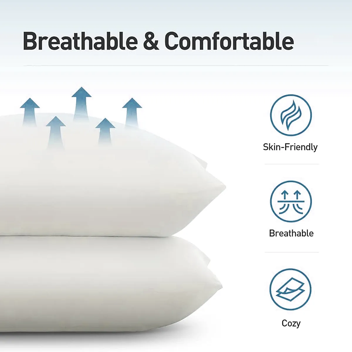 1. Breathable, Skin-Friendly Cover: Our bed pillows feature a breathable, hotel-quality polyester blend cover, enhancing their luxurious look and feel, ensuring a comfortable sleeping experience night after night.